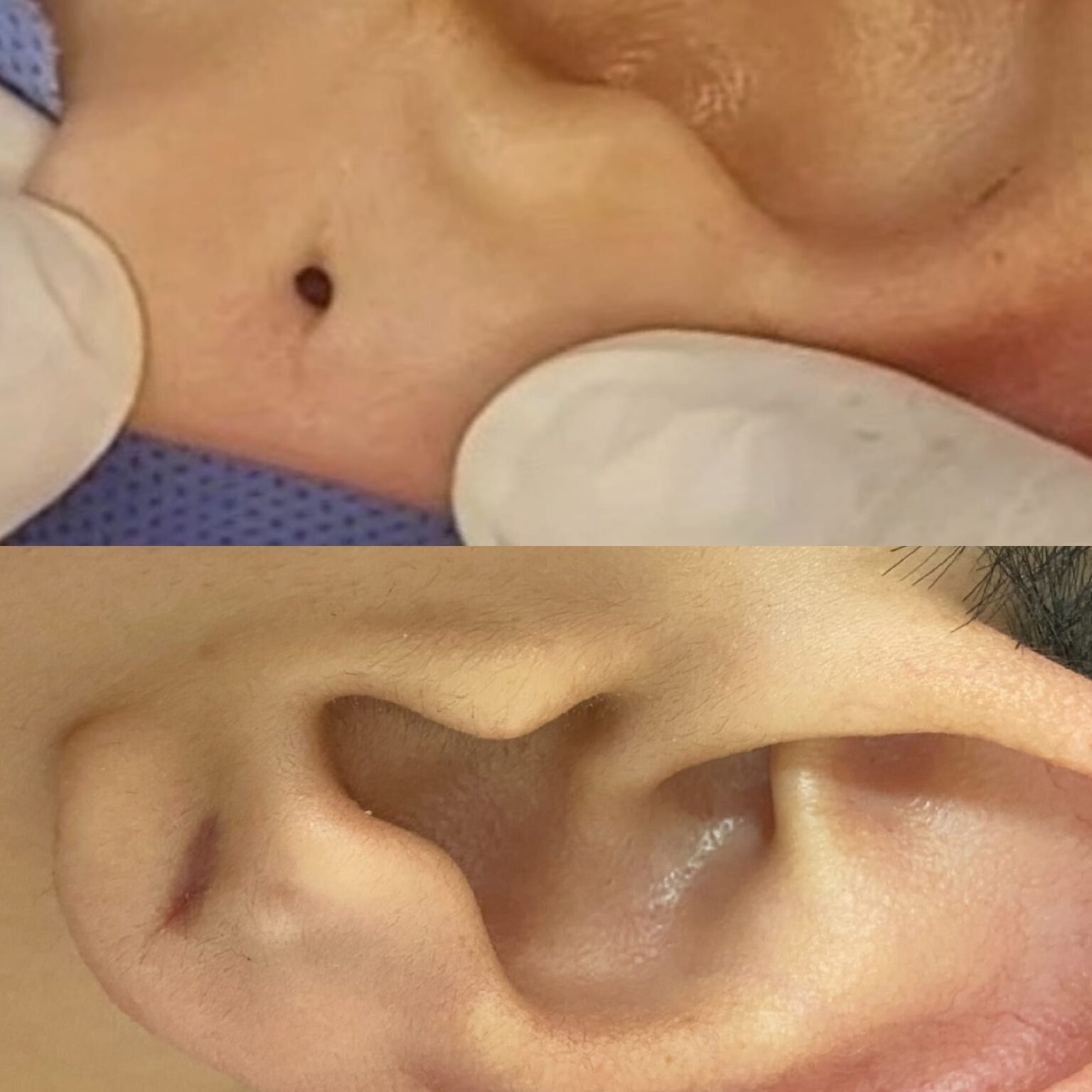 A técnica é aplicada na área do lóbulo da orelha, onde se encontra o rasgo ou a deformidade.